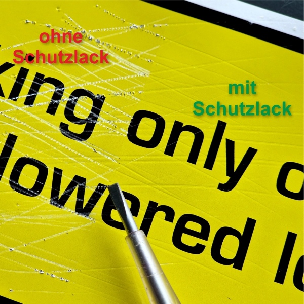 Wenn Ihr die Sticker langfristig nutzen wollt, solltet Ihr über diesen Schutzlack nachdenken. Der erhöht die Wiederstandskraft der Aufkleber deutlich genen UV-Licht und mechanische Beanspruchung.